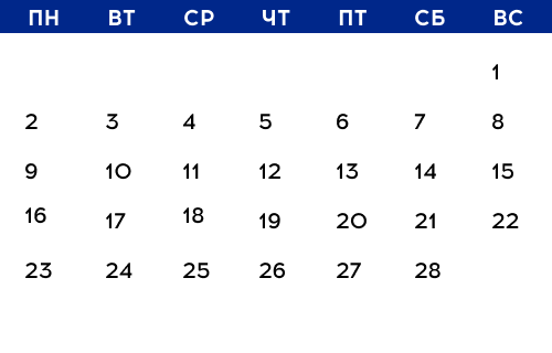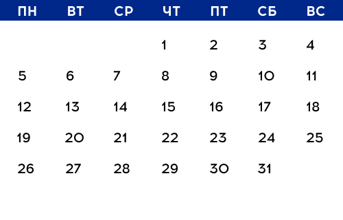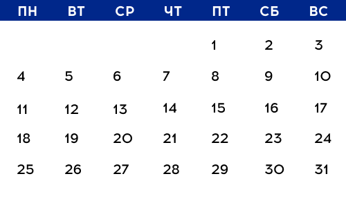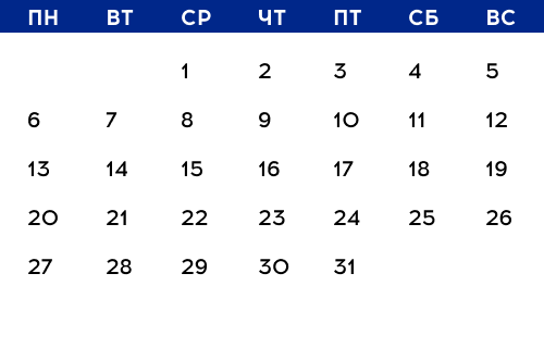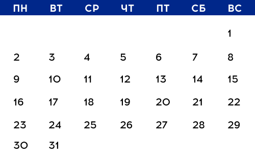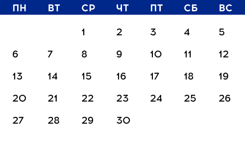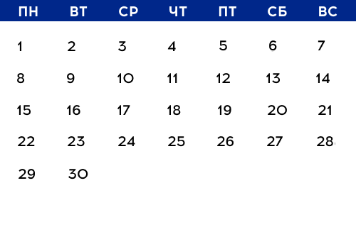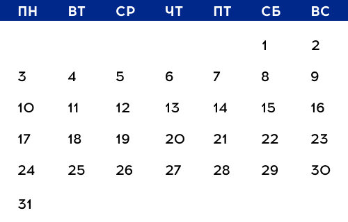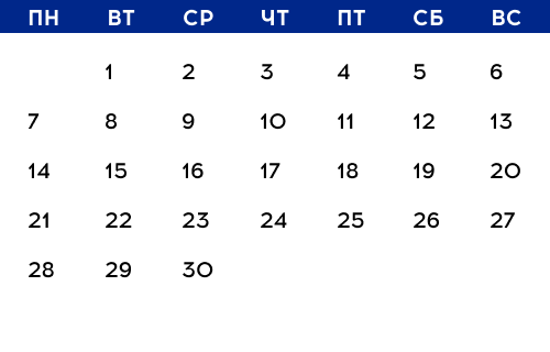 Наведите мышкой на любую дату и посмотрите, какие мероприятия будут в этот день. Подробное описание ищите ниже.